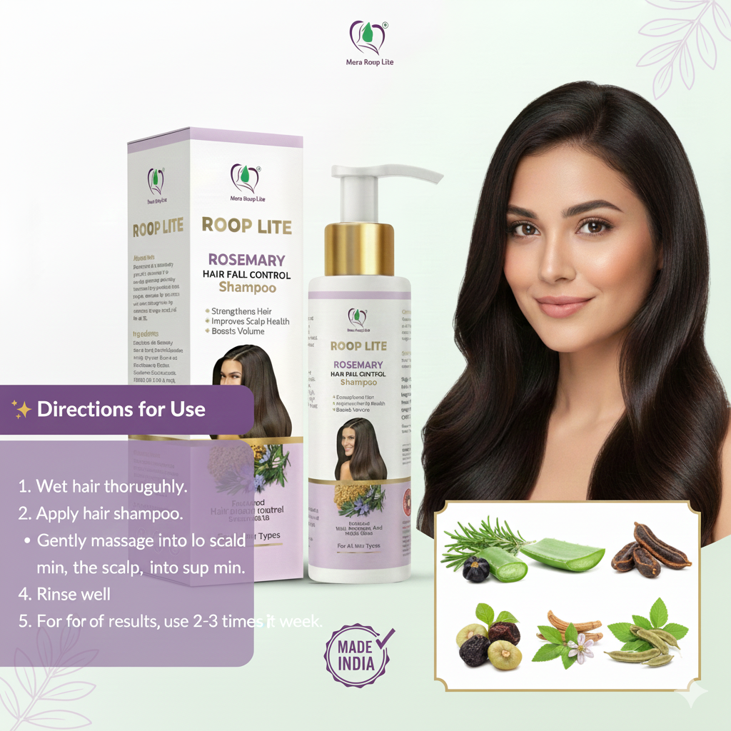 Hair fall is one of the most common problems faced by men and women today due to pollution, stress, chemical-based products, and unhealthy lifestyles. To tackle this issue naturally, Roop Lite Rosemary Hair Fall Control Shampoo is formulated with the goodness of pure rosemary extract along with herbal ingredients that strengthen your scalp, reduce breakage, and promote healthy hair growth.